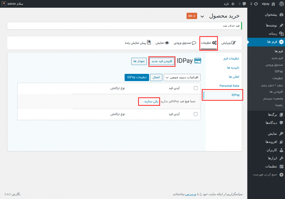 برای اینکه درگاه آیدی پی روی فرم فعال شود نیاز است تا حتما فیلدهای قیمت گذاری یا محصول به فرم اضافه کنید.